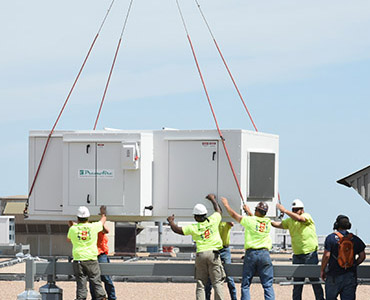 RapidHeli services in Tulsa use helicopters as the standard practice for HVAC transport and installation. Helicopter lifts provide an easier, safer, less manpower intensive solution to HVAC unit placement. RapidHeli projects use helicopters to complete commercial HVAC unit installations in a few hours, where a ground crane would have taken substantially longer.